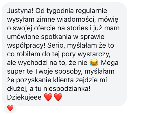 Wdrożyły konkretny system zimnych wiadomości, który krok po kroku pokazuję w kursie.